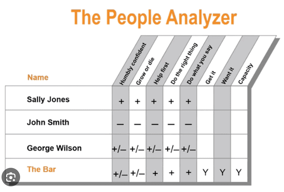 Este instrumento se basa en los valores de la empresa (que ya definiste en la visión). Sirve para hacer una evaluación sincera de si cada persona encaja… o no.